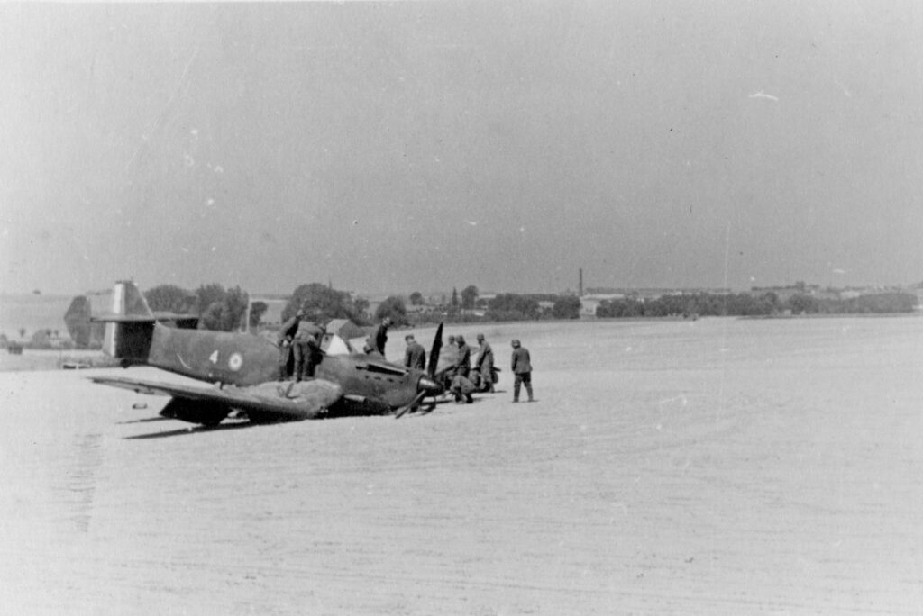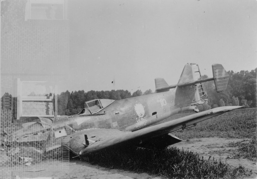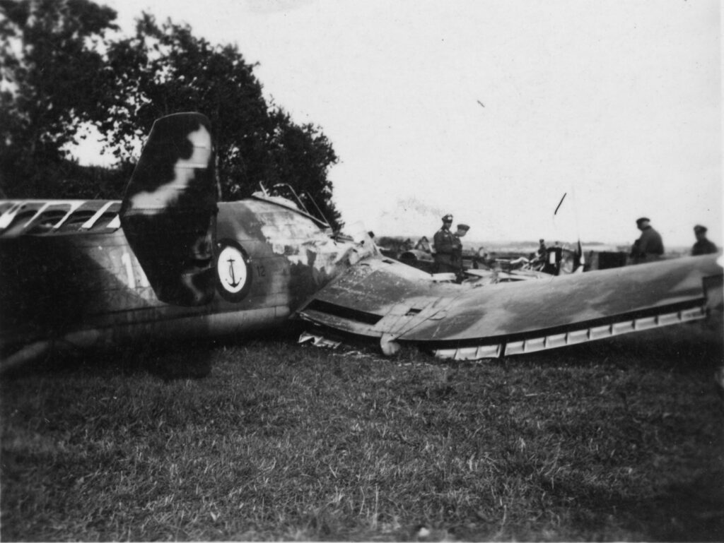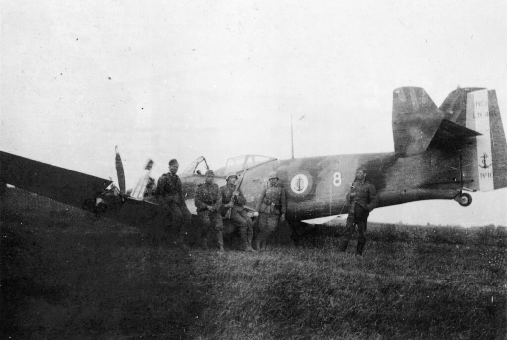 Loire-Nieuport 401 n°8 codé « 4 » de l’escadrille AB2 (Marine) abattu lors de l’attaque des troupes allemandes à Berlaimont le 19 mai 1940 et posé train escamoté à Solesmes-sur-Selle (Nord)